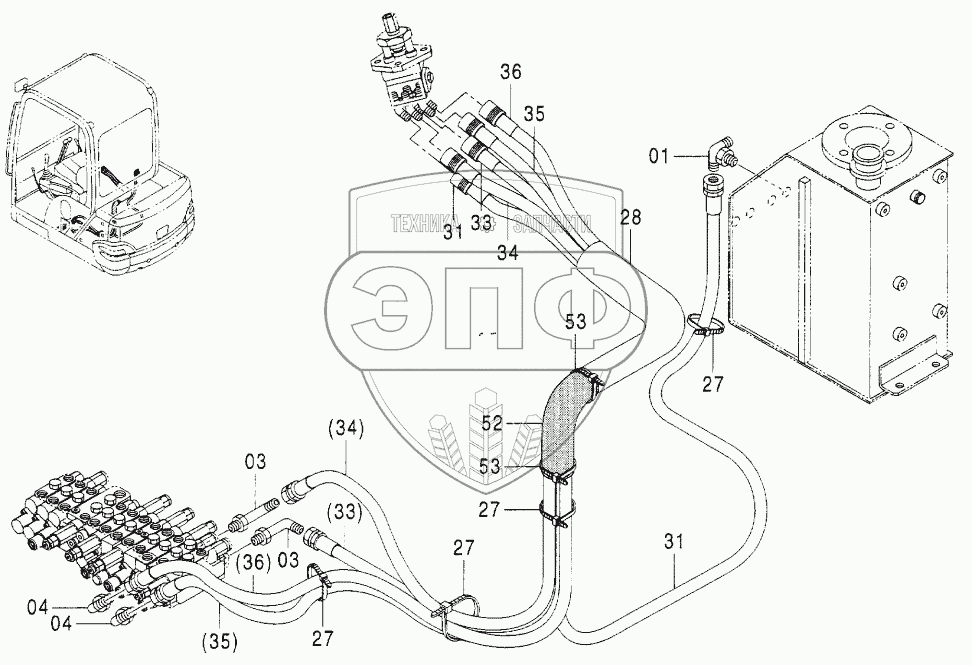 Каталог запасных частей к технике: Hitachi ZX-25. PILOT PIPING (2-1)