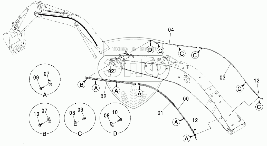 Каталог запасных частей к технике: Hitachi ZX-270. ASSIST PIPING (MONO BOOM)<280>