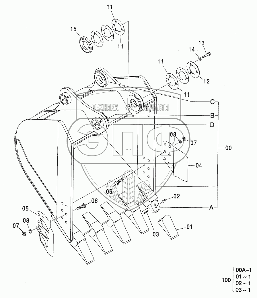 Каталог запасных частей к технике: Hitachi ZX-270. BUCKET 1.1 JIS 94