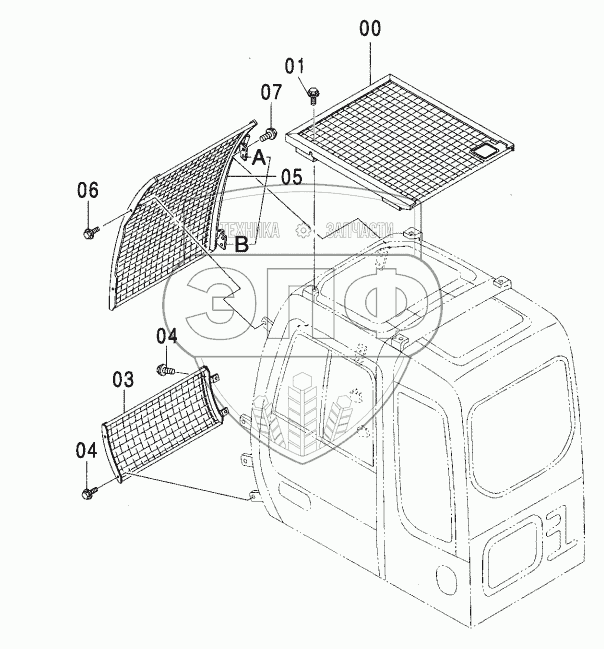 Каталог запасных частей к технике: Hitachi ZX-270. CAB GUARD STD