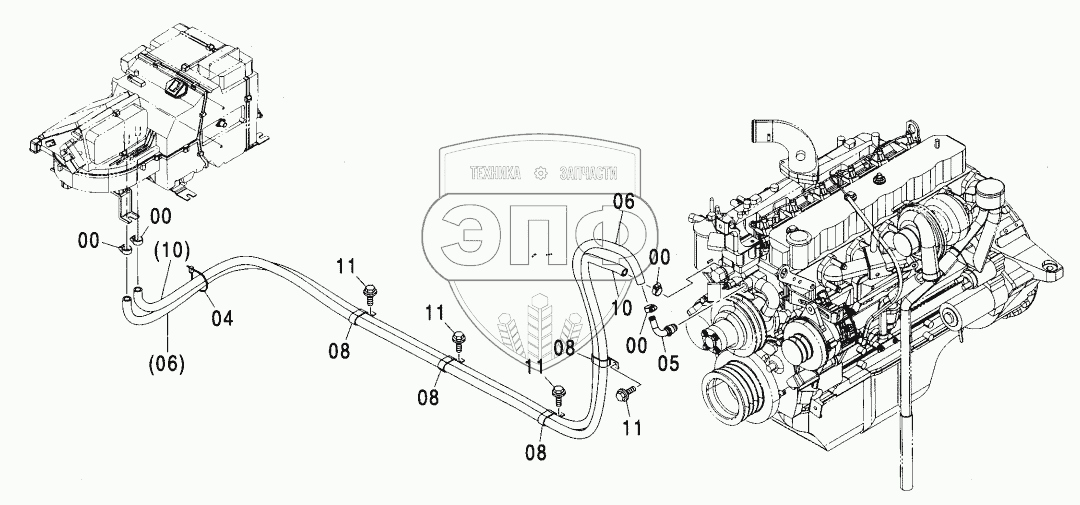 Каталог запасных частей к технике: Hitachi ZX-270. HEATER PIPING