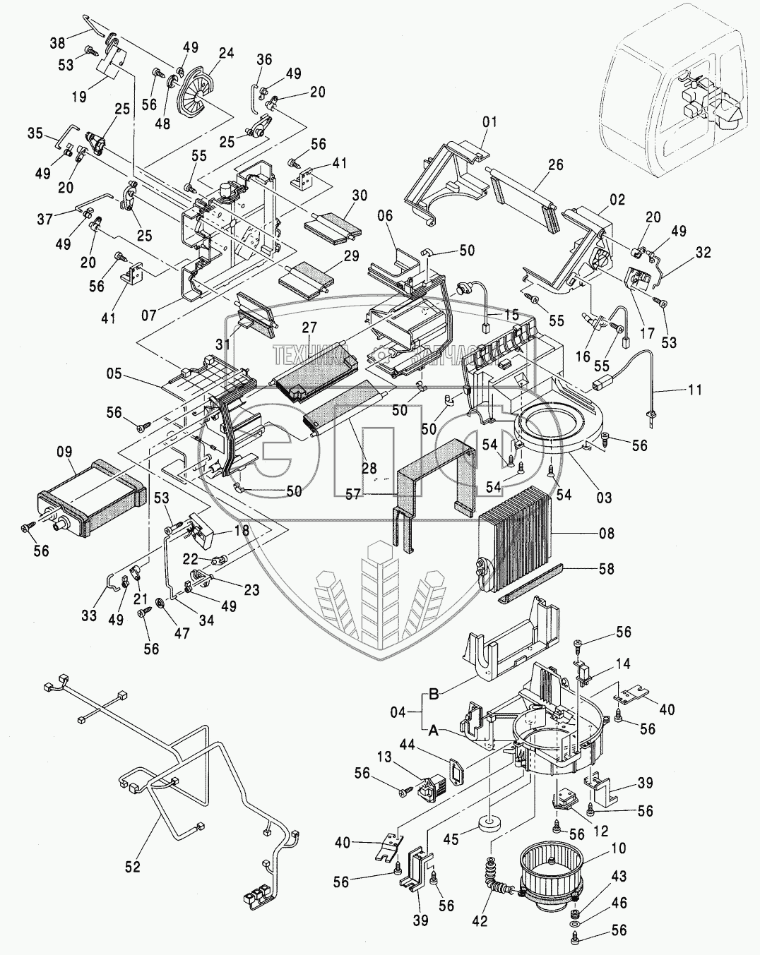 Каталог запасных частей к технике: Hitachi ZX-270. HEATER UNIT STD