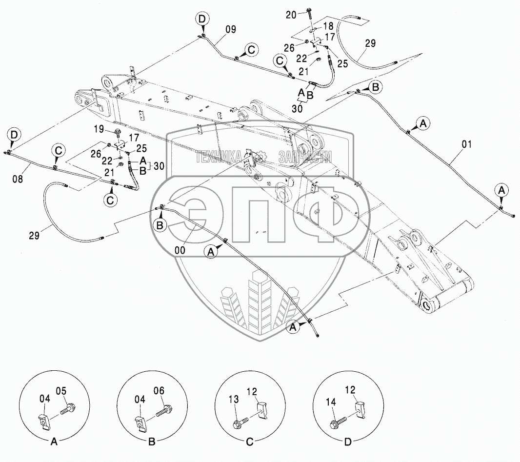 Каталог запасных частей к технике: Hitachi ZX-270. QUICKHITCH PIPING 2P-BOOM<280>