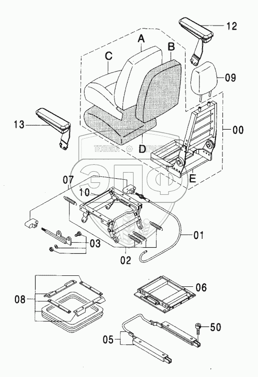 Каталог запасных частей к технике: Hitachi ZX-270. SEAT (CLOTH) STD