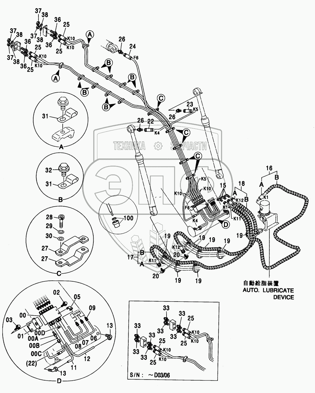 Каталог запасных частей к технике: Hitachi ZX-330. AUTO.LUBRICATE PIPING (BOOM)