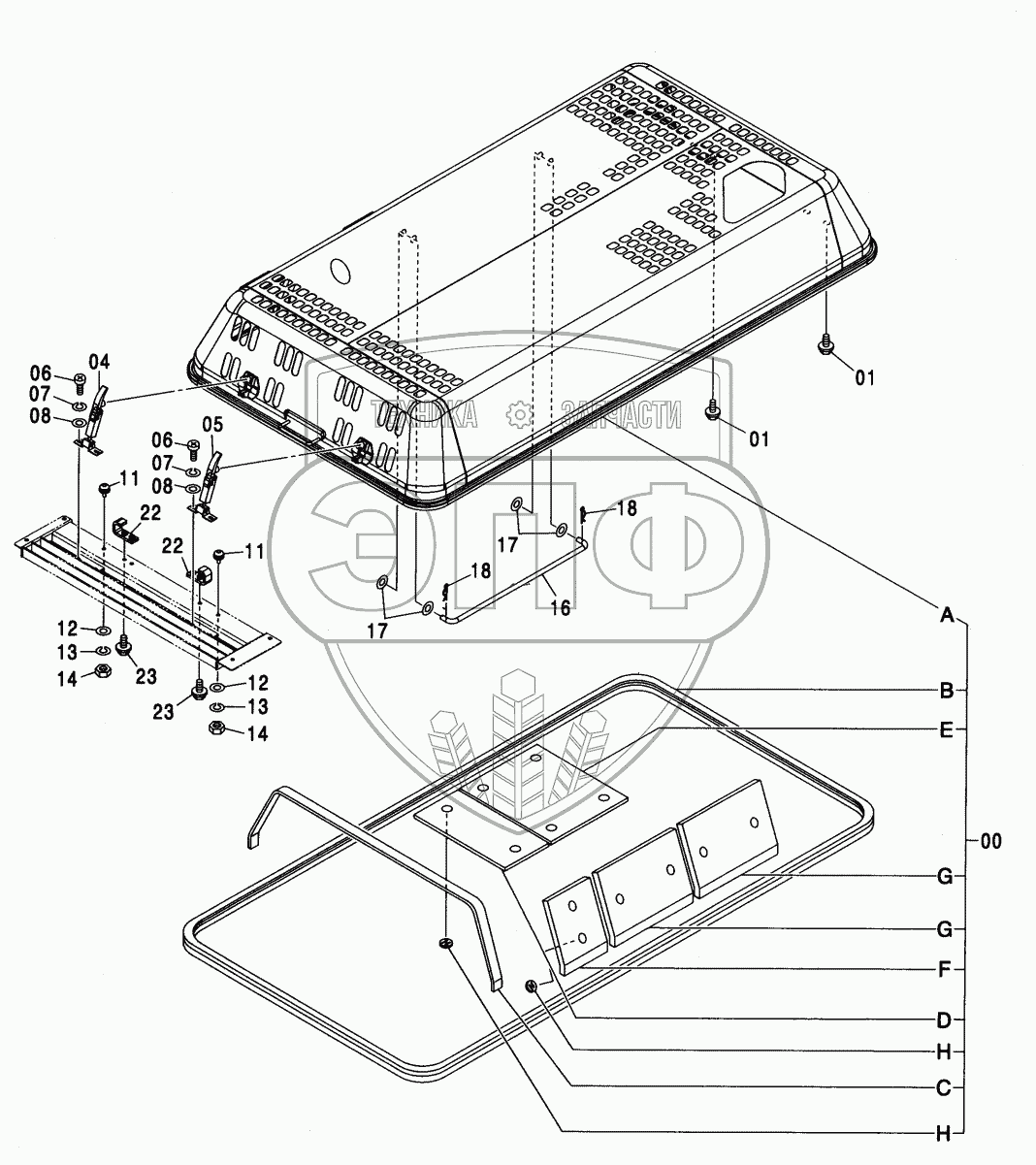 Каталог запасных частей к технике: Hitachi ZX-330. ENGINE COVER
