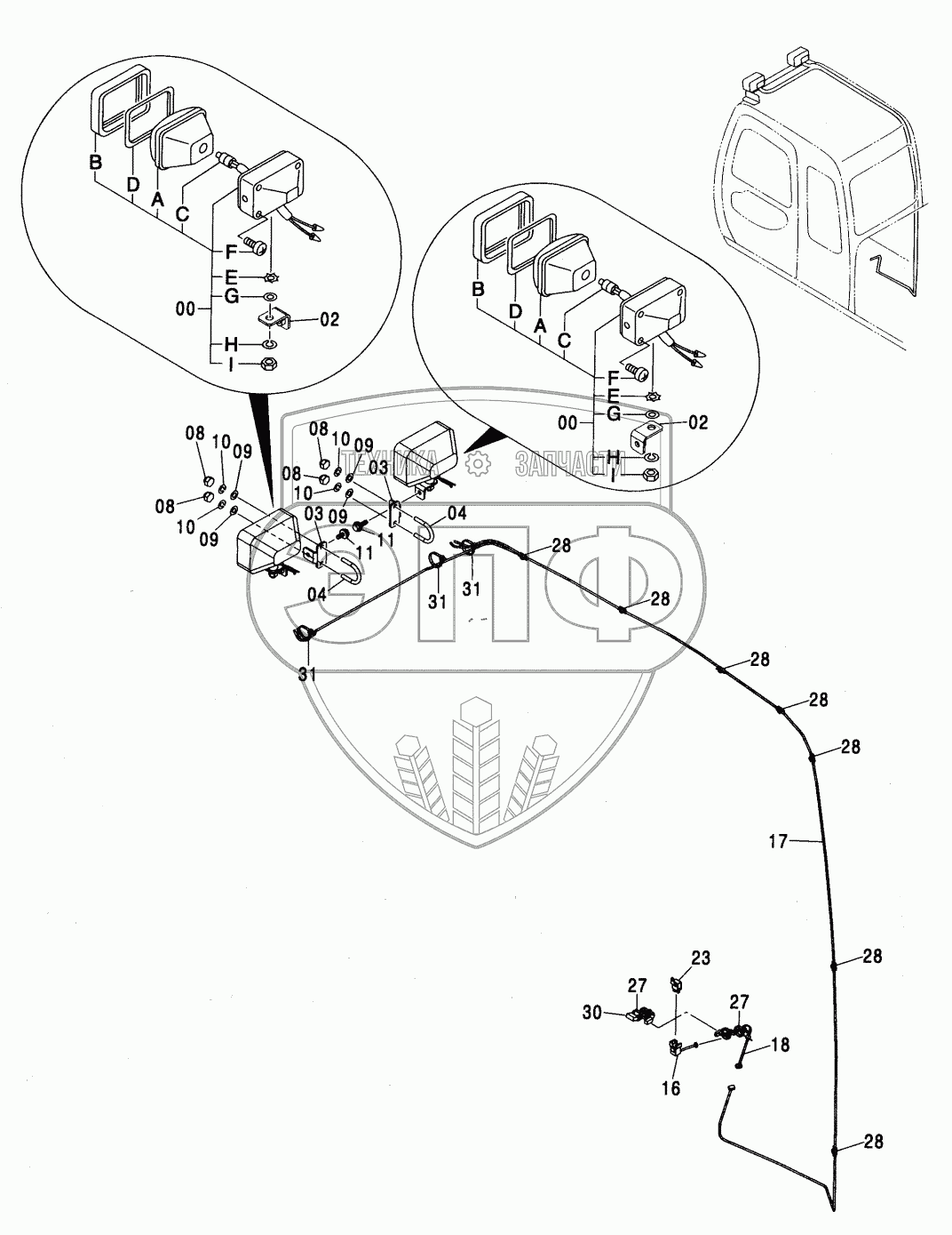 Каталог запасных частей к технике: Hitachi ZX-330. FRONT HEAD LAMP (2 LAMP)