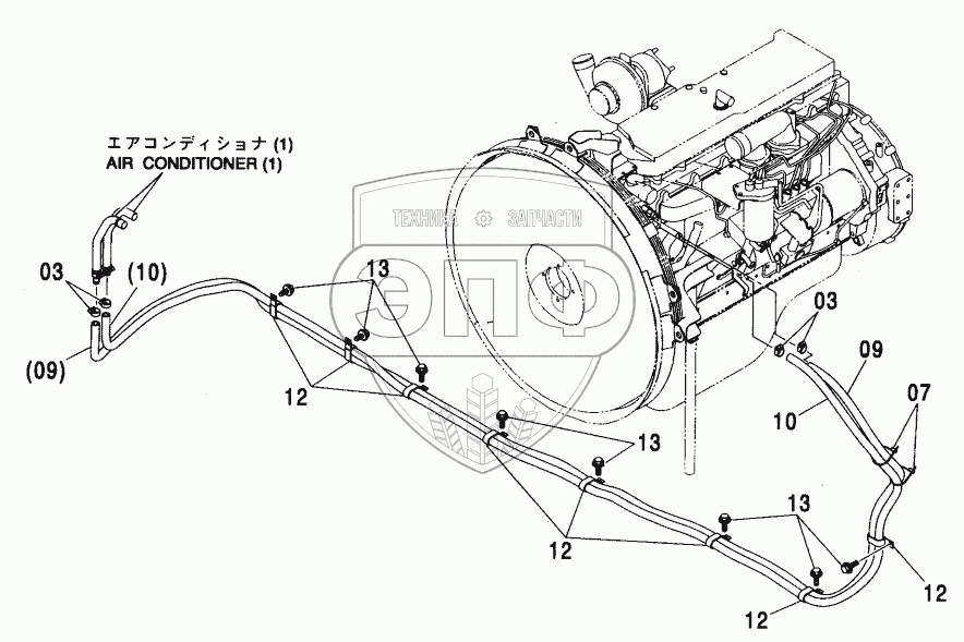 Каталог запасных частей к технике: Hitachi ZX-330. HEATER PIPING
