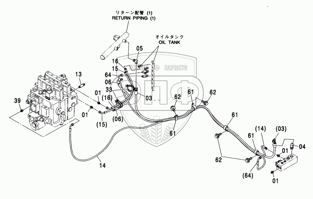 Каталог запасных частей к технике: Hitachi ZX-330. PILOT PIPING (10-1)