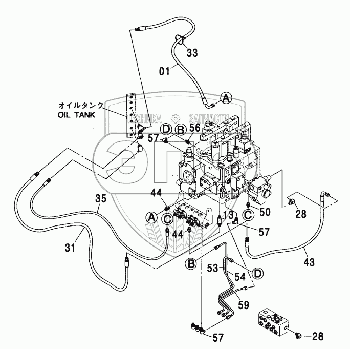 Каталог запасных частей к технике: Hitachi ZX-330. PILOT PIPING (10-2)