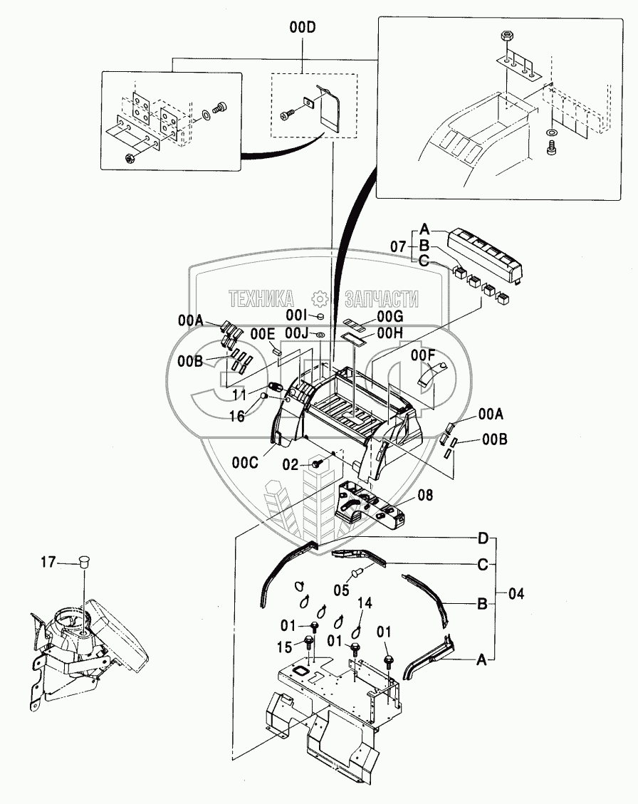 Каталог запасных частей к технике: Hitachi ZX-330. REAR BOX (HEATER)