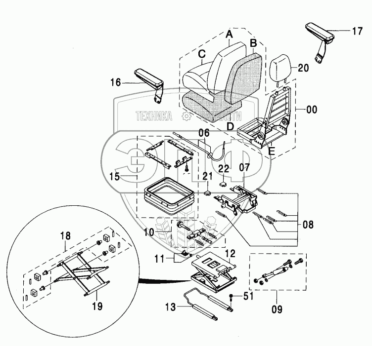 Каталог запасных частей к технике: Hitachi ZX-330. SUSPENSION SEAT (CLOTH)