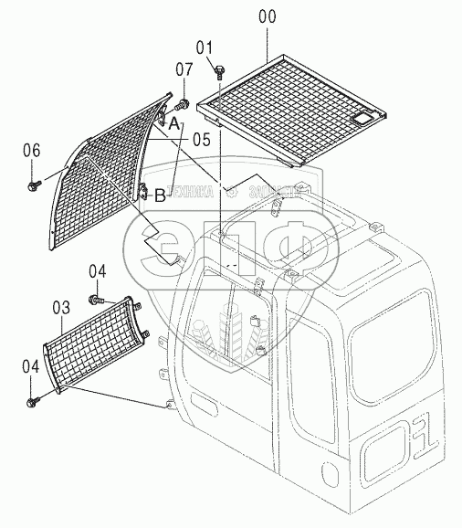 Каталог запасных частей к технике: Hitachi ZX-330-3G. CAB GUARD
