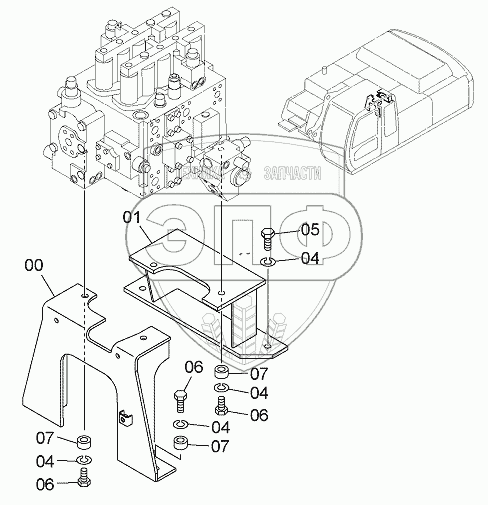 Каталог запасных частей к технике: Hitachi ZX-330-3G. CONTROL VALVE SUPPORT