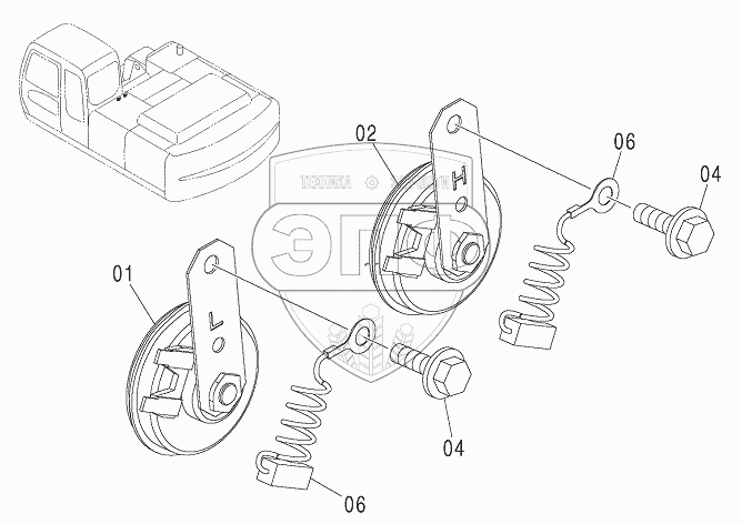 Каталог запасных частей к технике: Hitachi ZX-330-3G. HORN