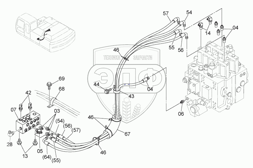 Каталог запасных частей к технике: Hitachi ZX-330-3G. PILOT PIPING (5-1)