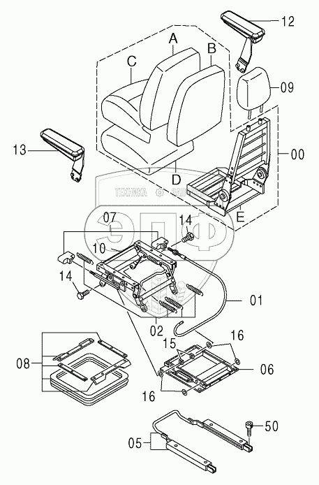 Каталог запасных частей к технике: Hitachi ZX-330-3G. SEAT (CLOTH)