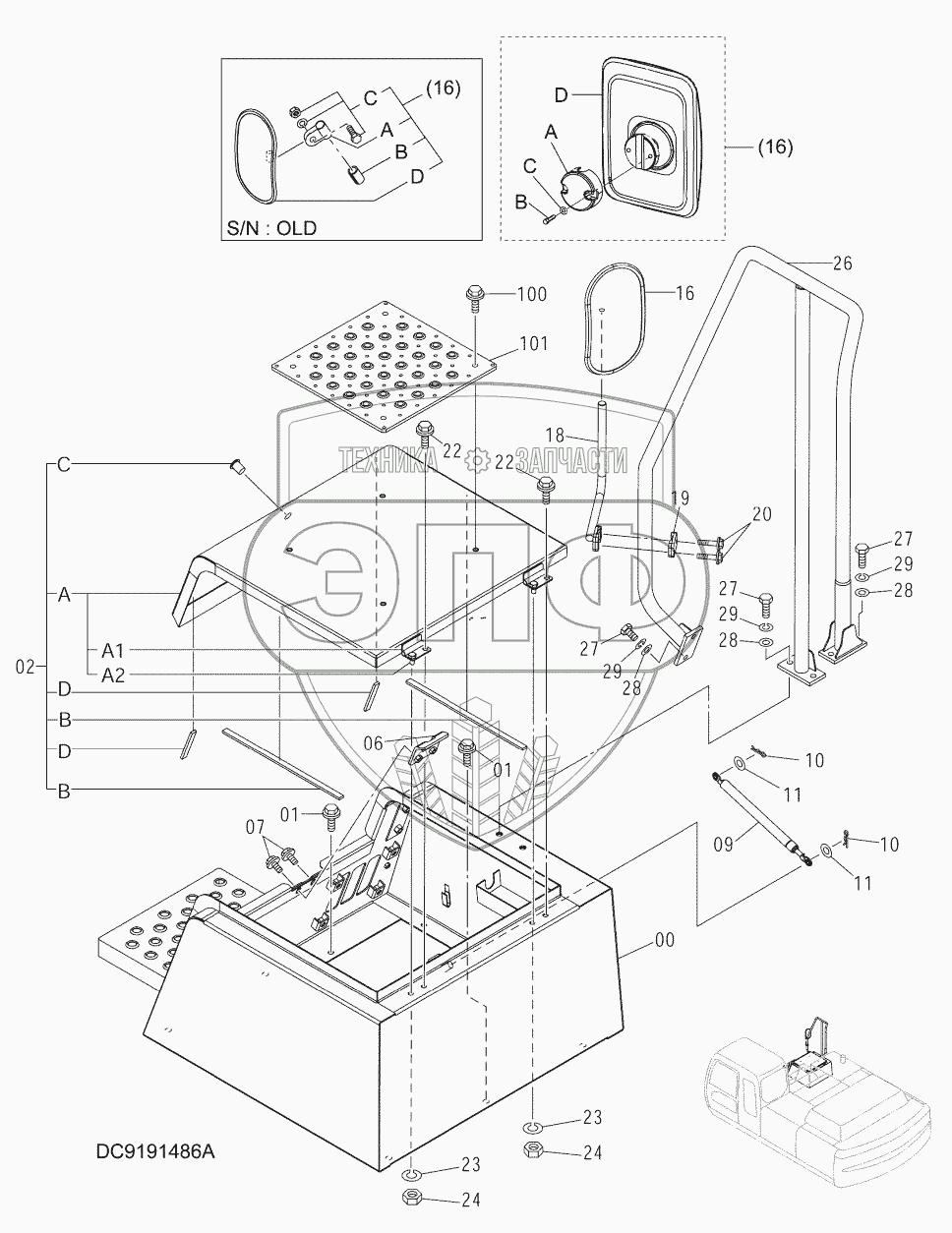 Каталог запасных частей к технике: Hitachi ZX-330-3G. TOOL BOX COVER