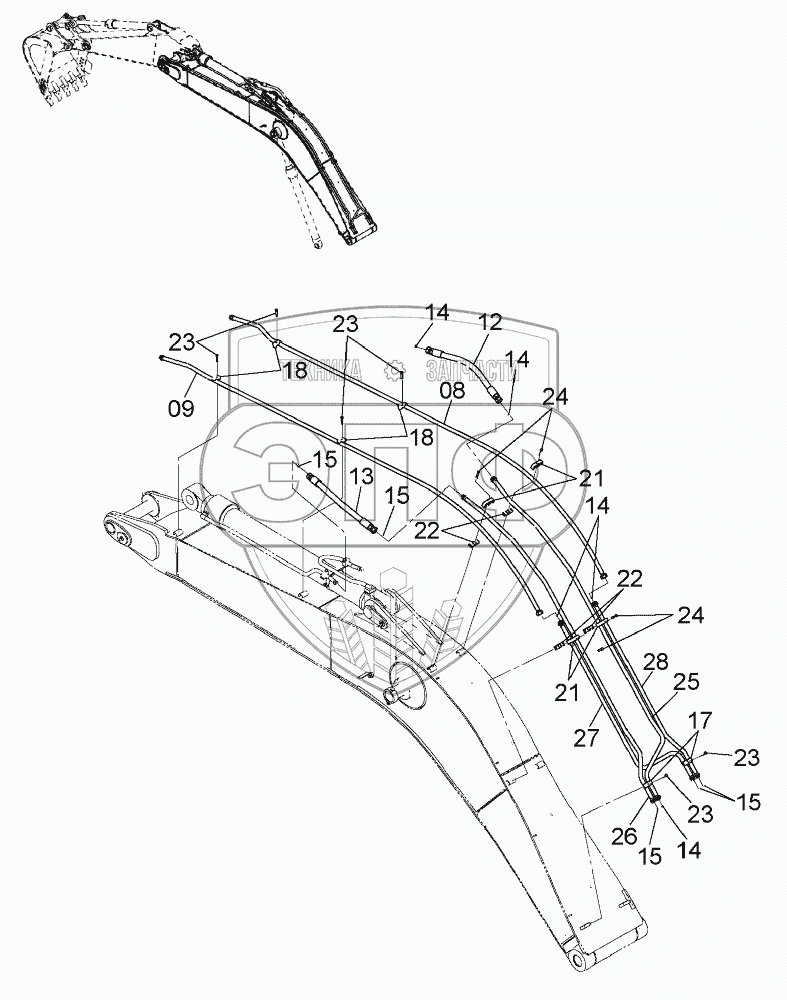 Каталог запасных частей к технике: Hitachi ZX-400R-3. FRONT PIPING <LCH>