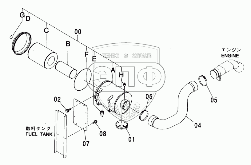 Каталог запасных частей к технике: Hitachi ZX-450. AIR CLEANER <460>