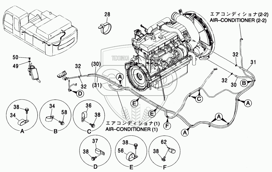 Каталог запасных частей к технике: Hitachi ZX-450. AIR-CONDITIONER (2-1) <460>