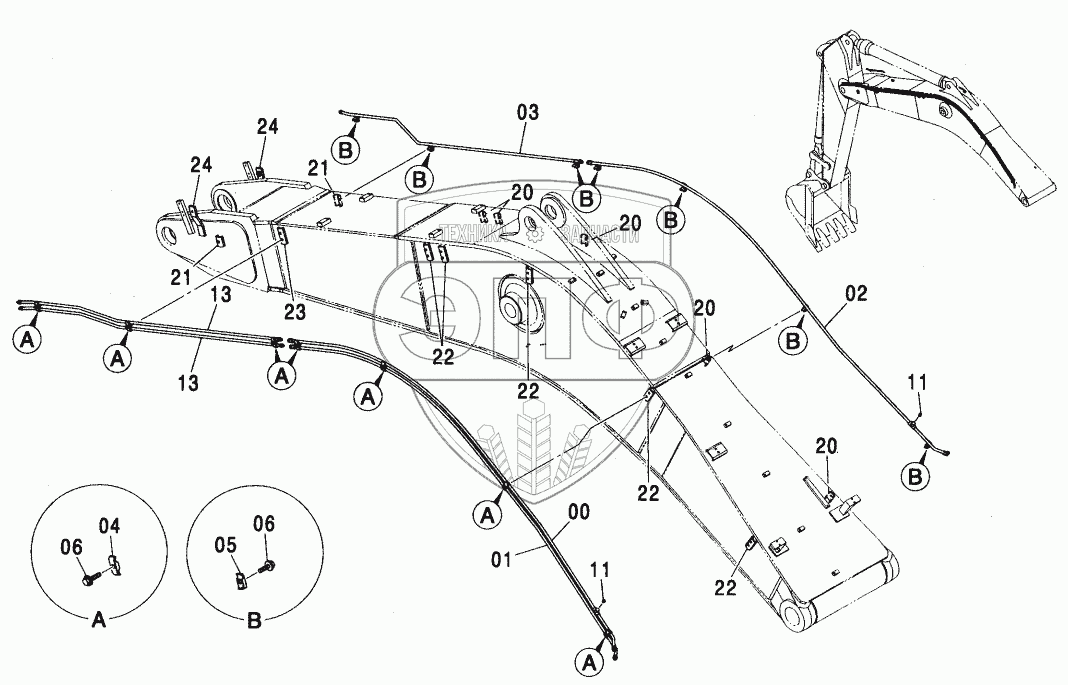 Каталог запасных частей к технике: Hitachi ZX-450. ASSIST PIPING (BE BOOM)