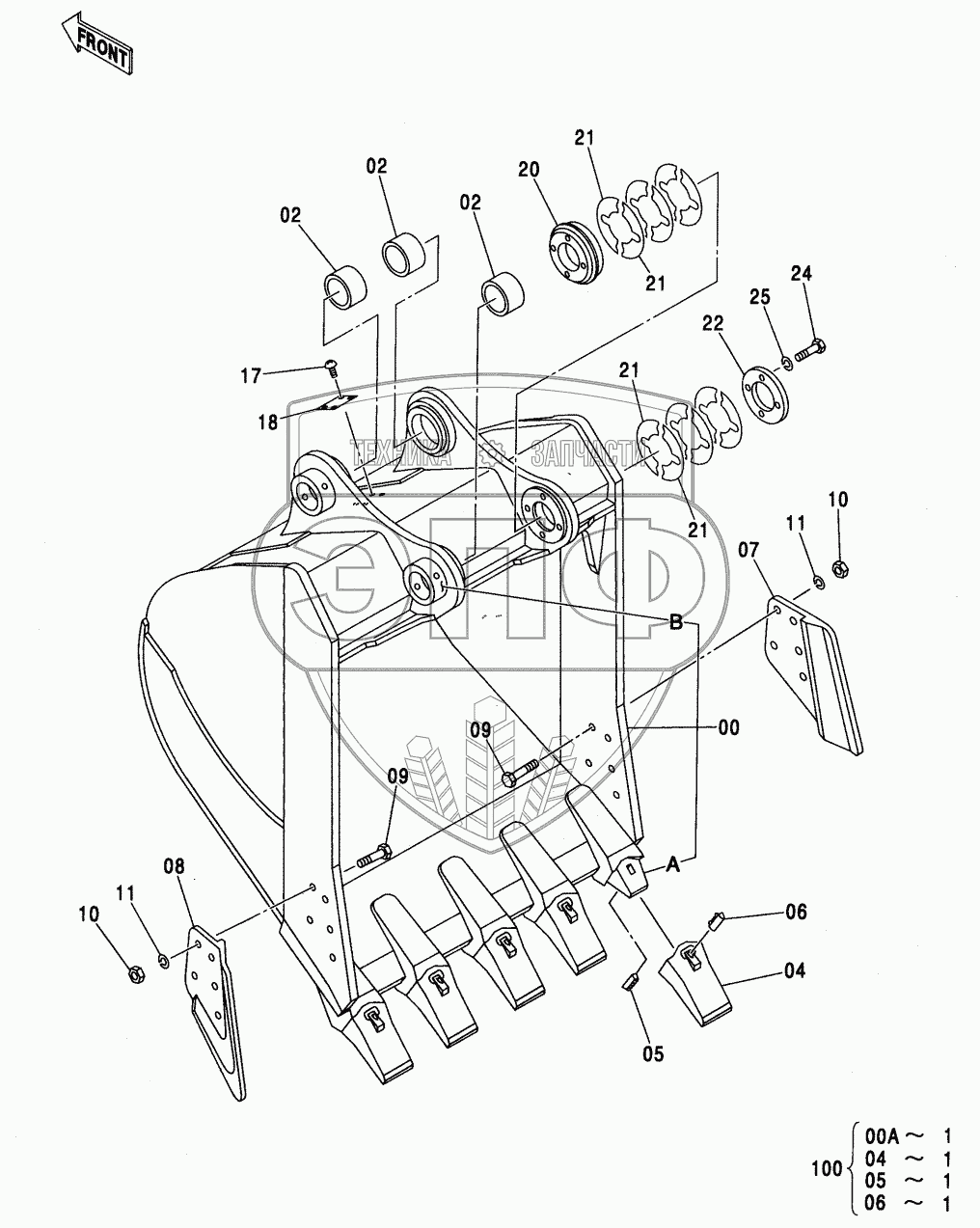 Каталог запасных частей к технике: Hitachi ZX-450. BUCKET 2.1 (JIS 94)