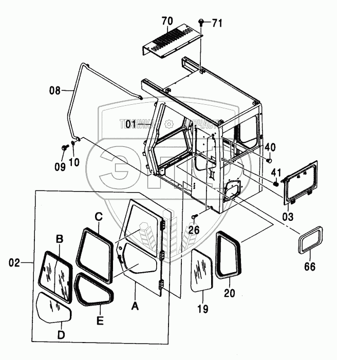 Каталог запасных частей к технике: Hitachi ZX-450. CAB (1) <H,MTH>