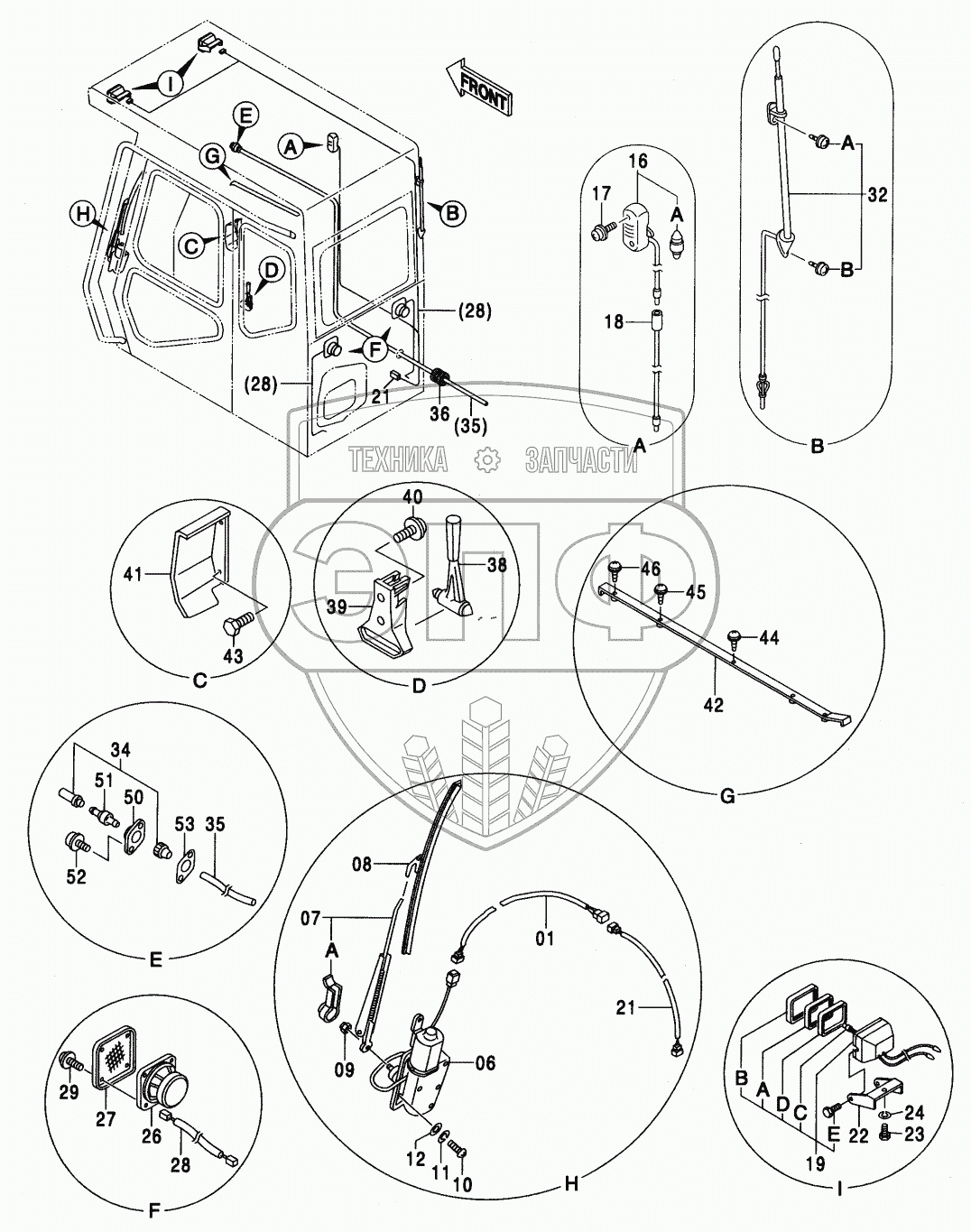 Каталог запасных частей к технике: Hitachi ZX-450. CAB PARTS <H.MTH>