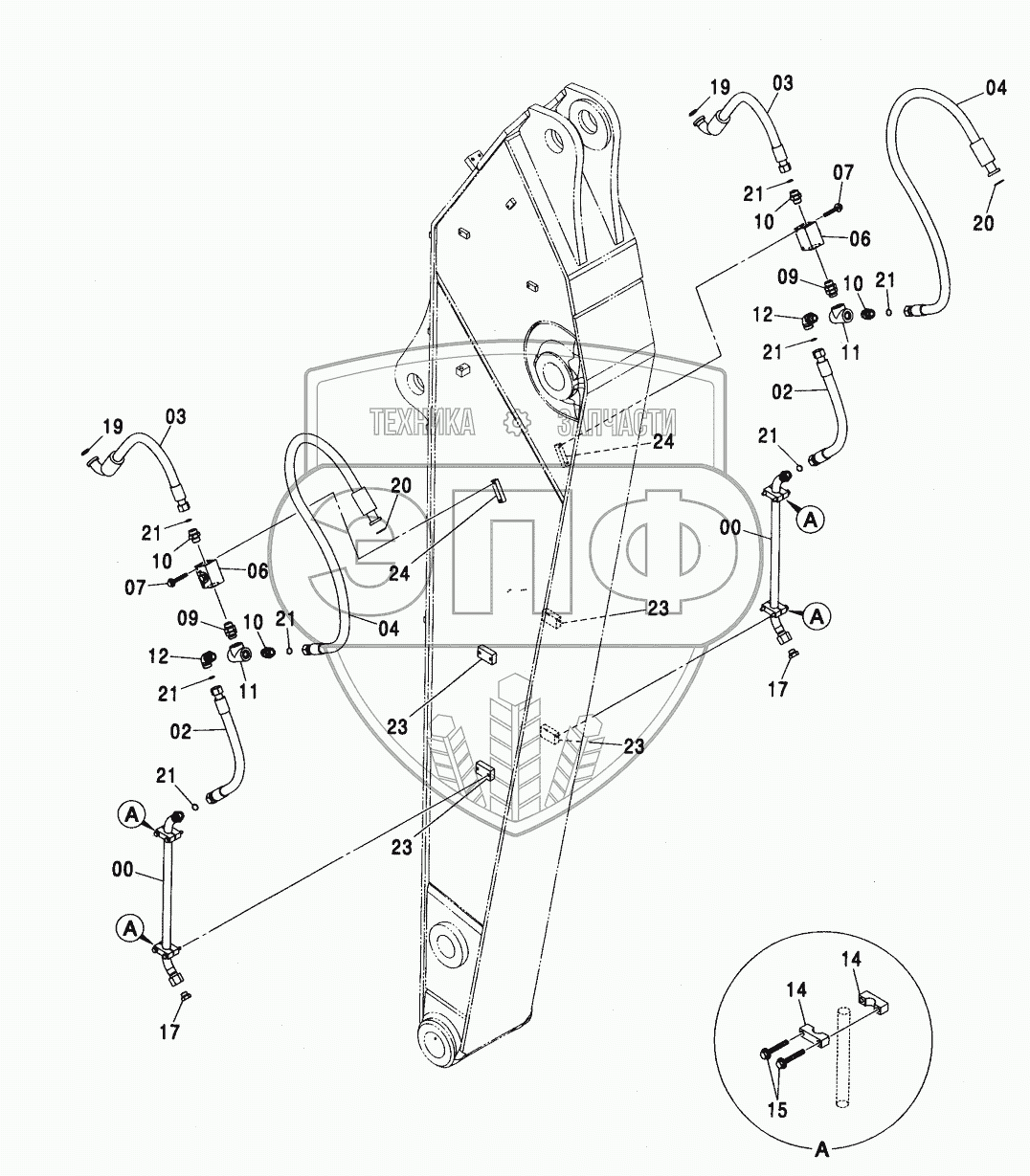 Каталог запасных частей к технике: Hitachi ZX-450. CLAMSHELL PIPING (SEMI-LONG ARM)