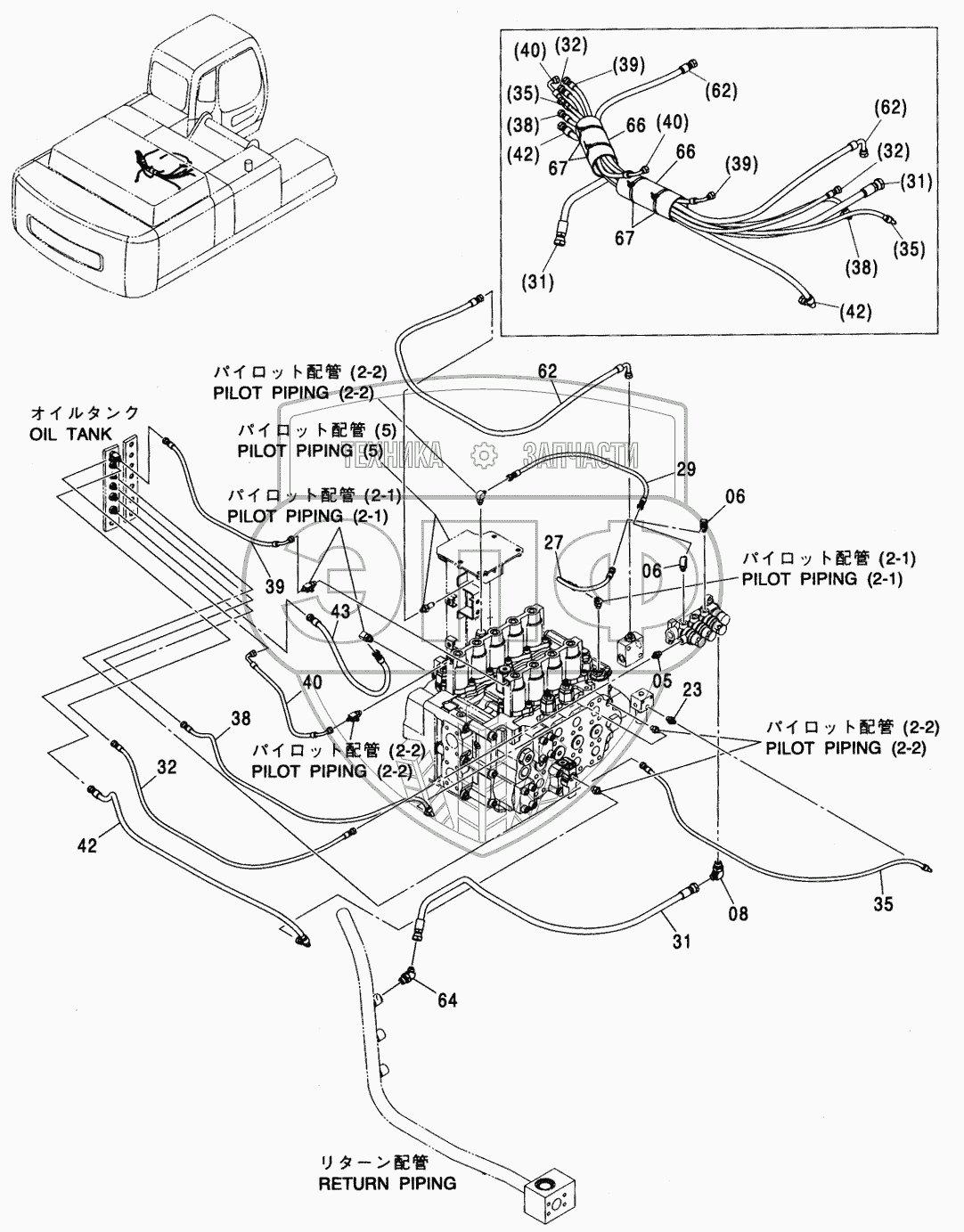 Каталог запасных частей к технике: Hitachi ZX-450. PILOT PIPING (4-1) <460>