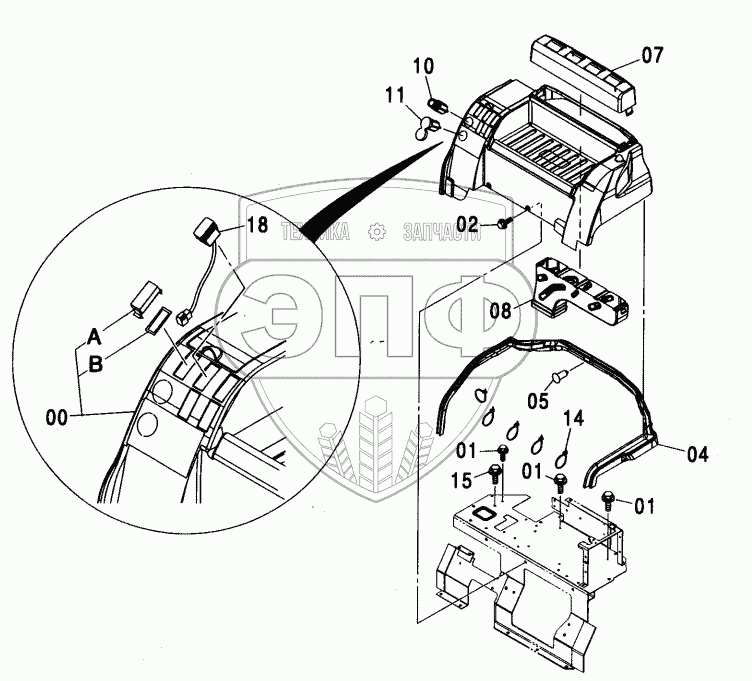 Каталог запасных частей к технике: Hitachi ZX-450. REAR BOX (12V POWER SUPPLY)