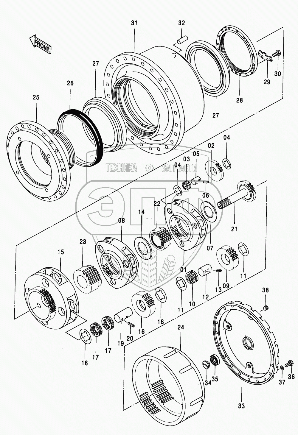 Каталог запасных частей к технике: Hitachi ZX-450. TRANSMISSION (TRAVEL) (MT TRACK)