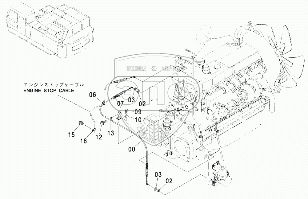 Каталог запасных частей к технике: Hitachi ZX-600. ENGINE CONTROL CABLE