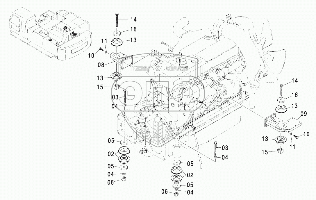 Каталог запасных частей к технике: Hitachi ZX-600. ENGINE SUPPORT