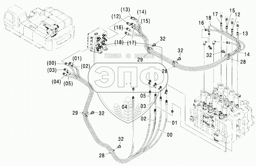 Каталог запасных частей к технике: Hitachi ZX-600. PILOT PIPING (5-1)