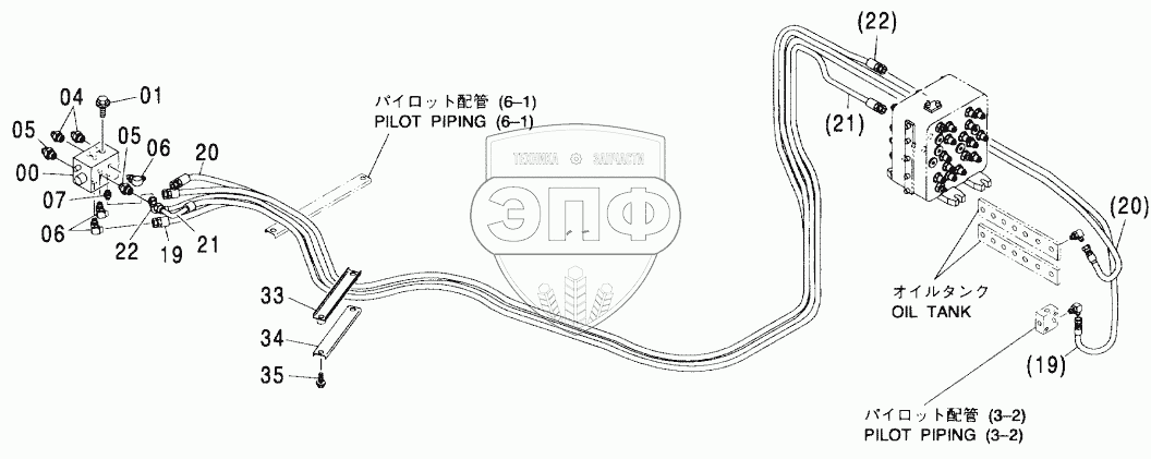 Каталог запасных частей к технике: Hitachi ZX-600. PILOT PIPING (6-2)