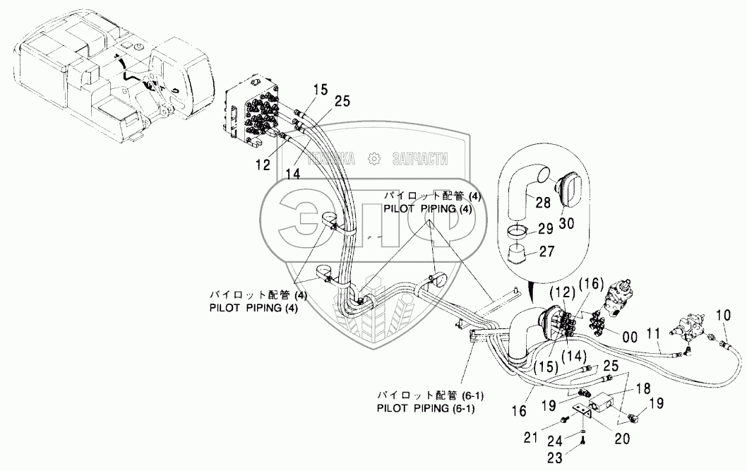 Каталог запасных частей к технике: Hitachi ZX-600. PILOT PIPING (7-1)
