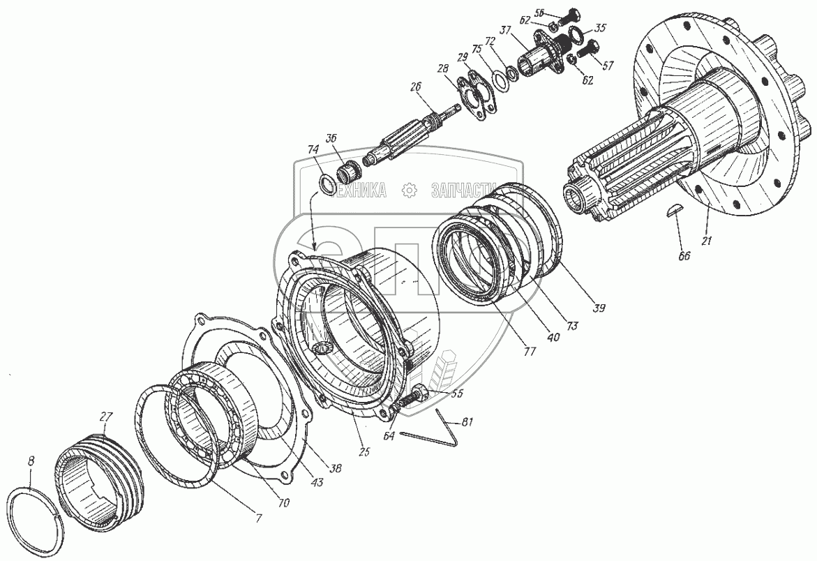 Каталог запасных частей к технике: ХТЗ МТ-ЛБ. Бортовая передача 8.11.011А