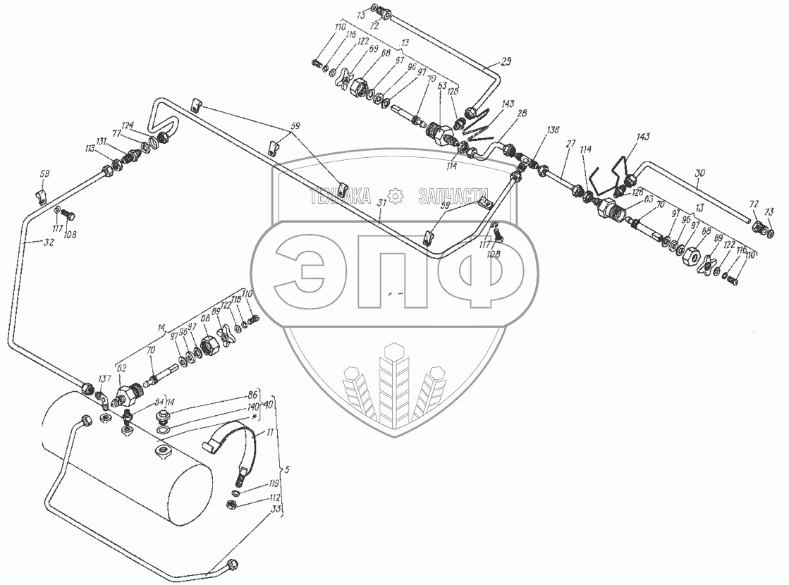 Каталог запасных частей к технике: ХТЗ МТ-ЛБ. Пневмосистема 6.24.001