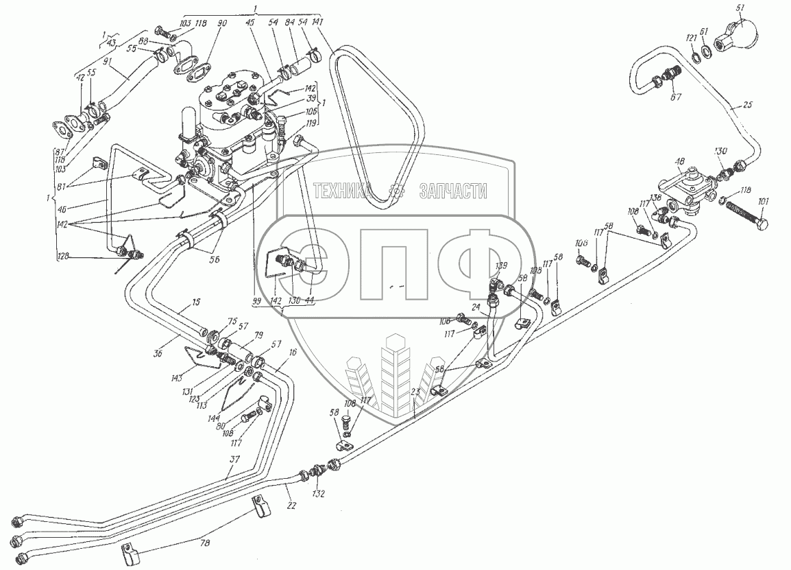 Каталог запасных частей к технике: ХТЗ МТ-ЛБ. Пневмосистема 6.24.001