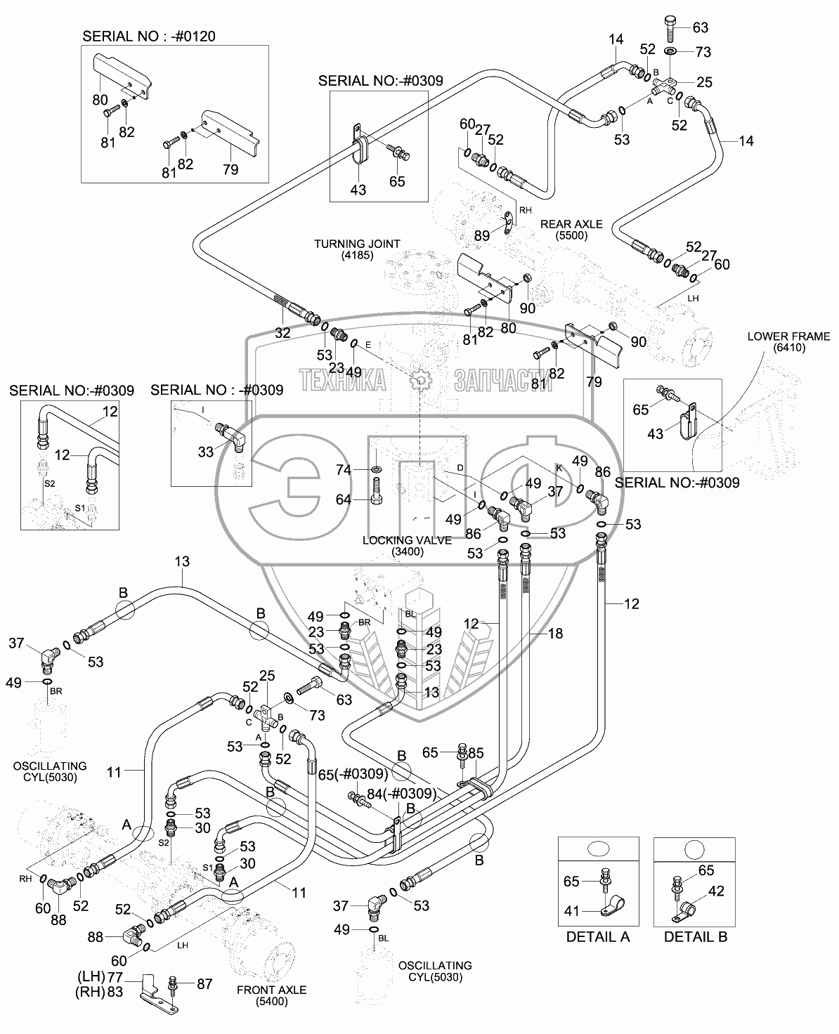 Каталог запасных частей к технике: Hyundai R140W-9. LOWER HYD PIPING 2 (#0074-)