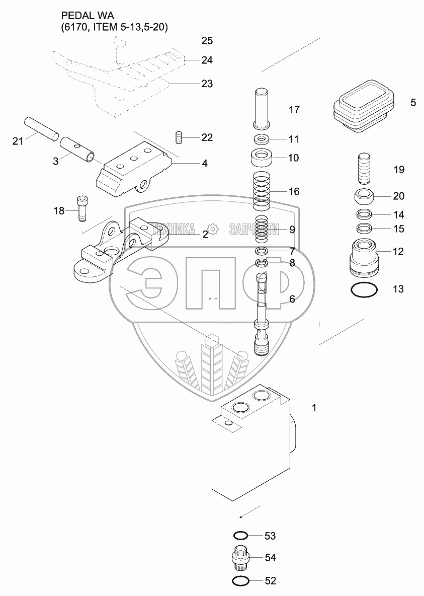 Каталог запасных частей к технике: Hyundai R140W-9. SINGLE PEDAL (DOUBLE ACTING)