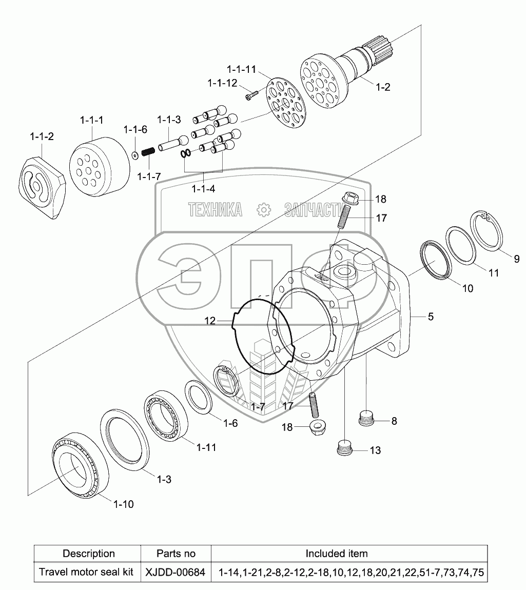 Каталог запасных частей к технике: Hyundai R140W-9. TRAVEL MOTOR (1/2)