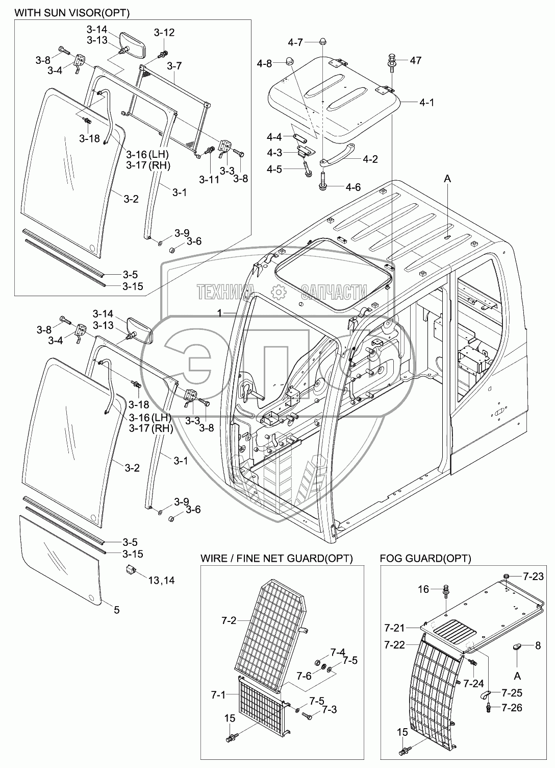 Каталог запасных частей к технике: Hyundai R140W-9S. CAB ASSY (1/4)