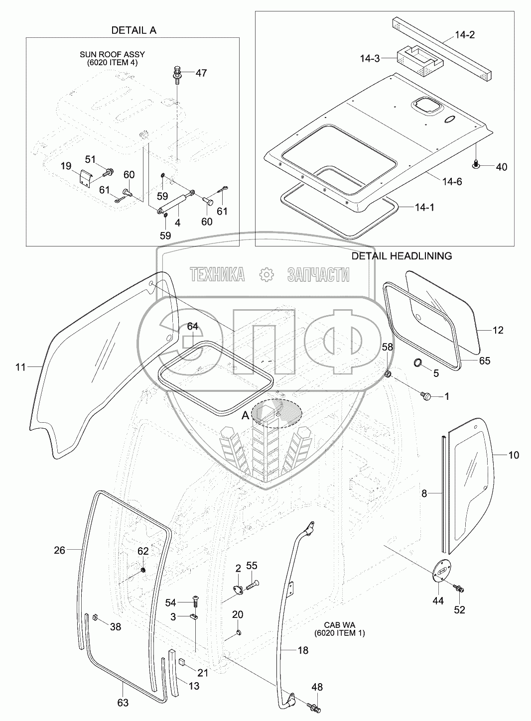 Каталог запасных частей к технике: Hyundai R140W-9S. CAB ASSY (3/4)