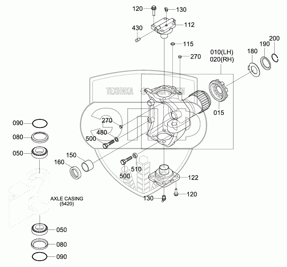 Каталог запасных частей к технике: Hyundai R140W-9S. FRONT AXLE JOINT HOUSING