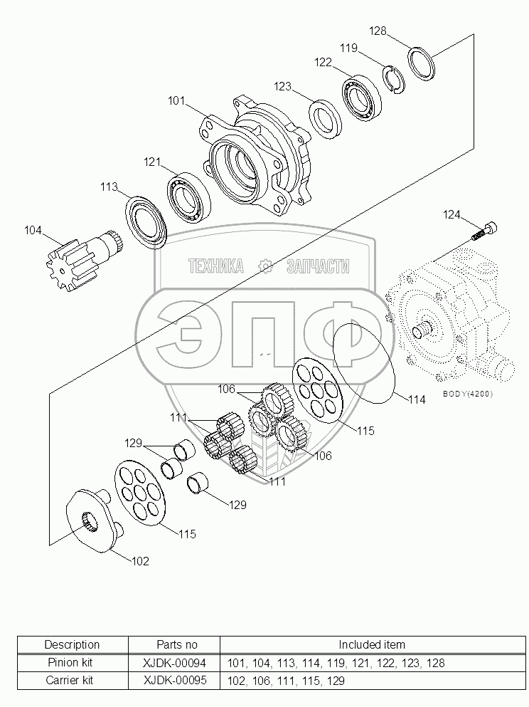 | 1 | XJDK-00094 | PINION KIT | Нет на складе | |