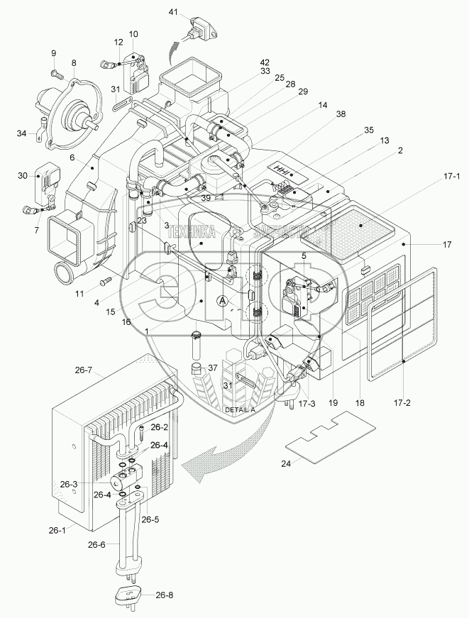 Каталог запасных частей к технике: Hyundai R170W-7. AIRCON & HEATER UNIT-FATC