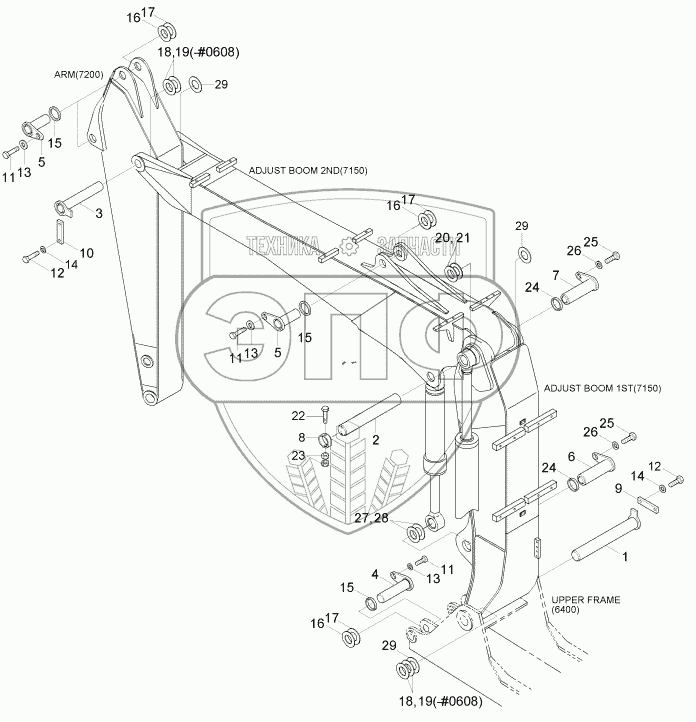 Каталог запасных частей к технике: Hyundai R170W-7. BOOM MOUNTING (ADJUST BOOM)